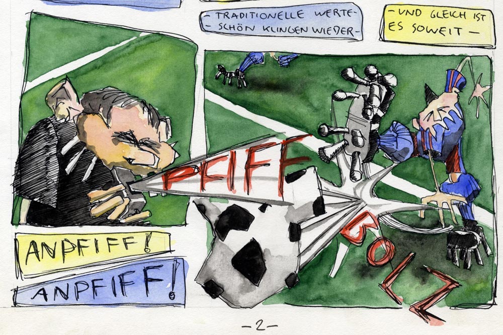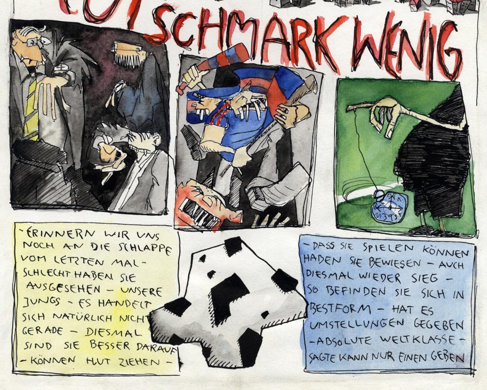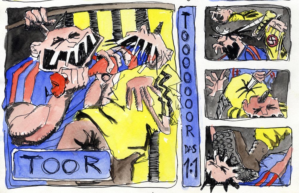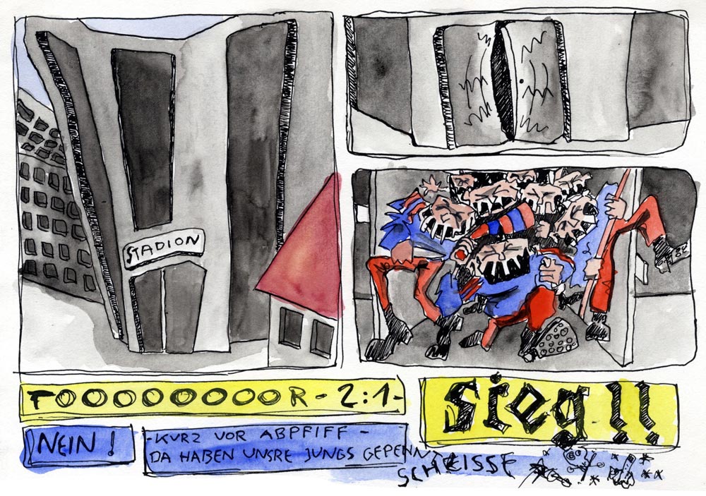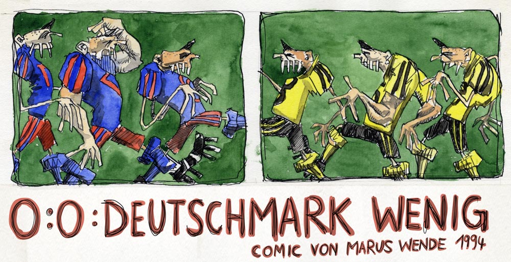Beim Aufräumen habe ich einen alten Comic von mir gefunden, den ich 1994 zur Fußball WM angefertigt hatte. Zum Angucken einfach unten auf das erste kleine Bild klicken und dann anhand der Pfeile zum jeweils nächsten Bild wechseln.
