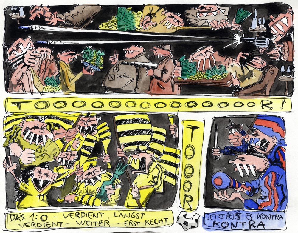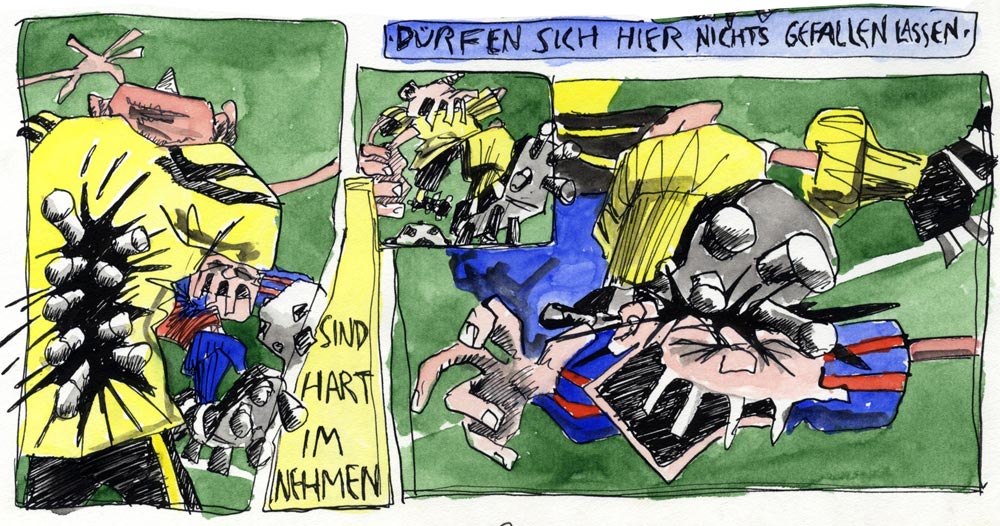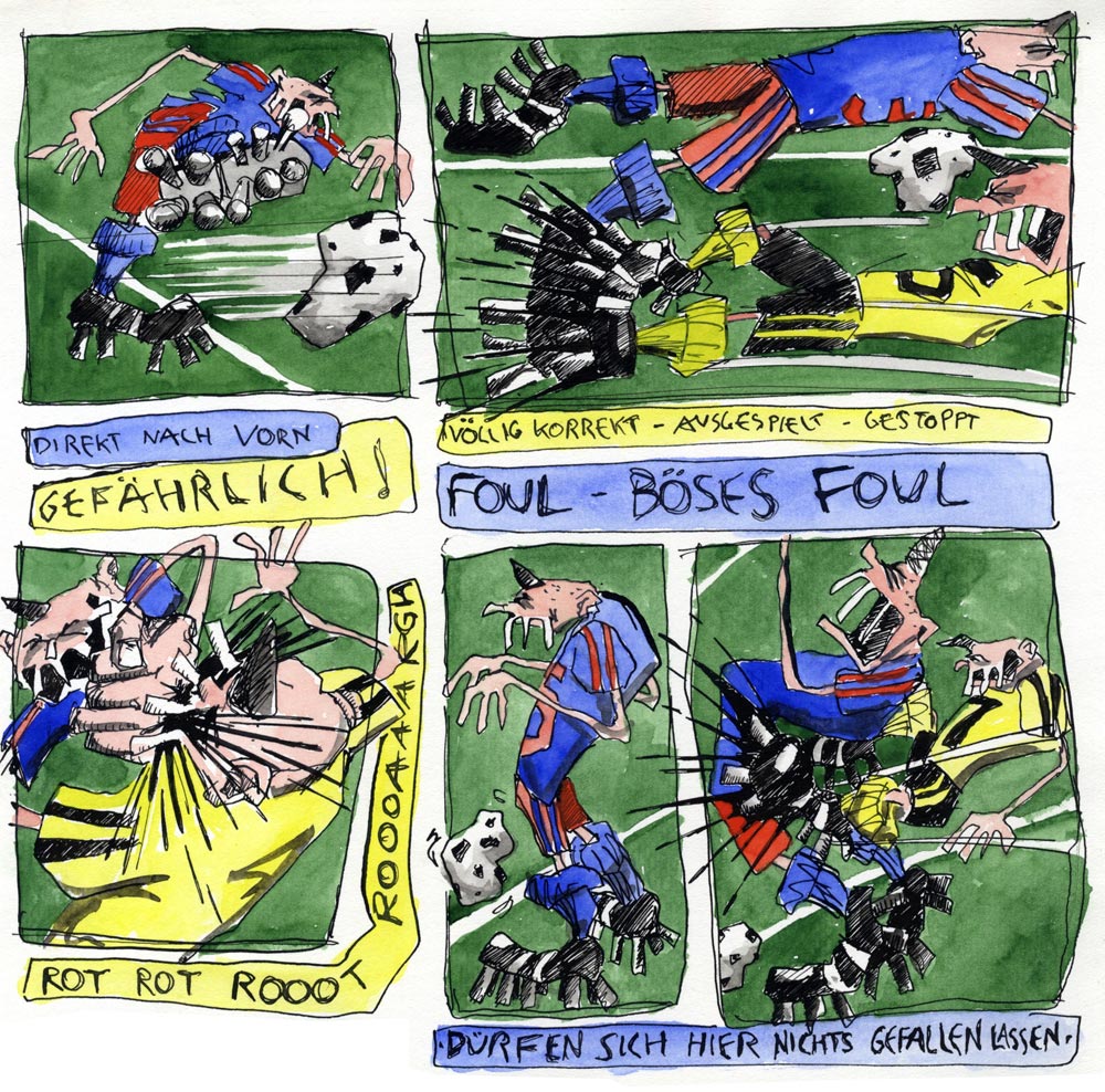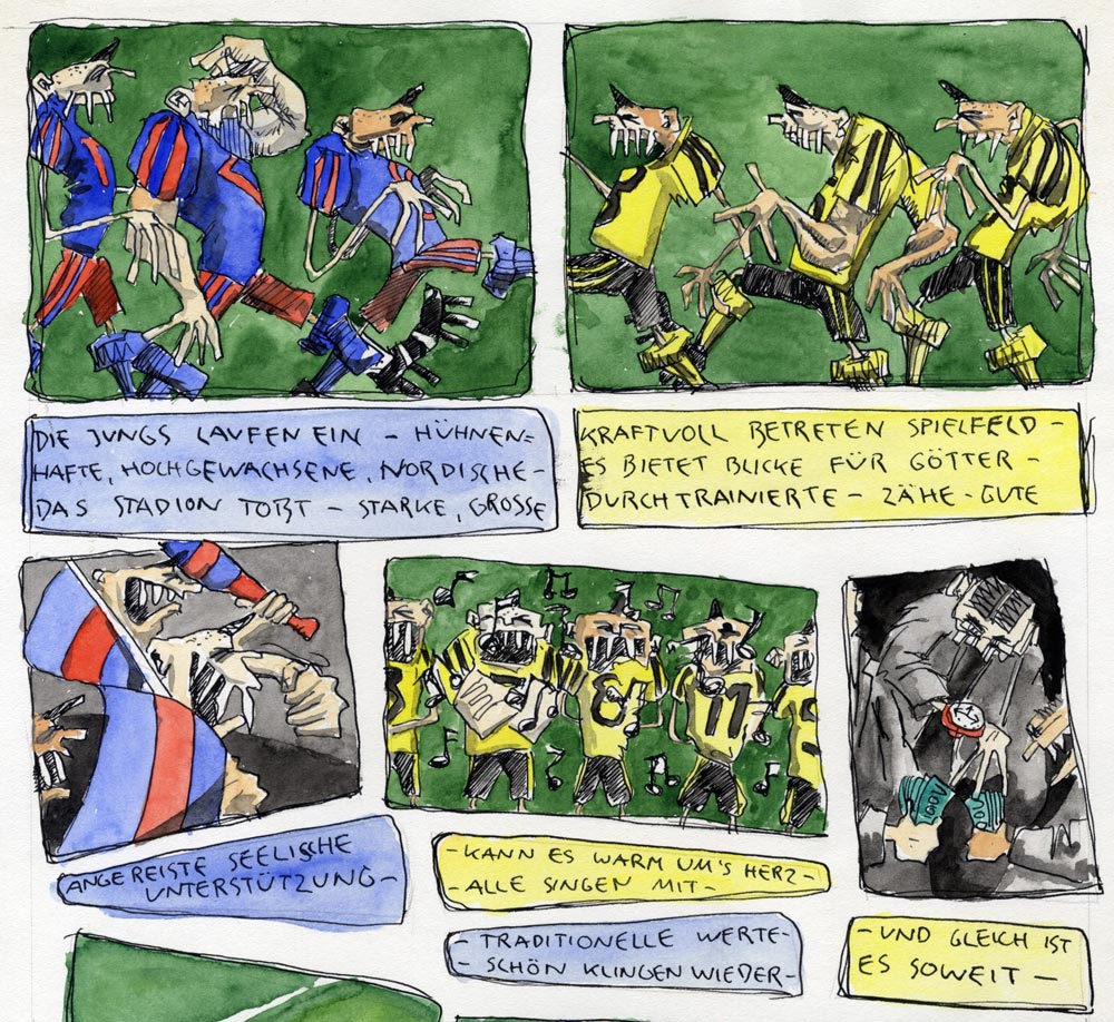 Beim Aufräumen habe ich einen alten Comic von mir gefunden, den ich 1994 zur Fußball WM angefertigt hatte. Zum Angucken einfach unten auf das erste kleine Bild klicken und dann anhand der Pfeile zum jeweils nächsten Bild wechseln.