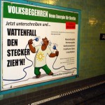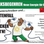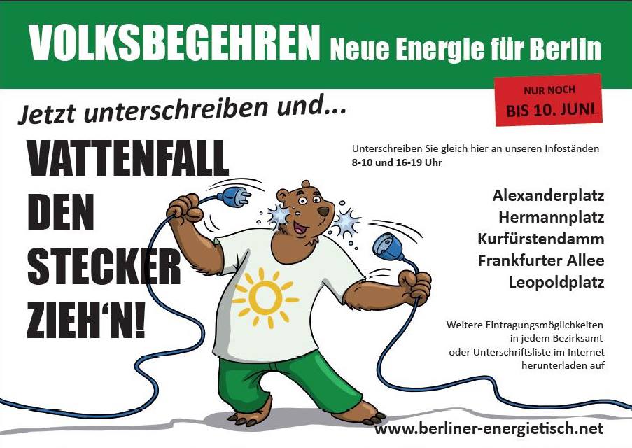 Im Zuge des Berliner Volksbegehrens „Neue Energie für Berlin“, für das ich bereits einen Bären als Kampagnen-Figur entwickelt hatte und einen animierten Kampagnen-Spot umgesetzt hatte, entstand im Mai 2013 eine weitere Illustration des „Energie-Bären“ für ein Großplakat, dass in U-Bahn-Stationen für die Endphase der Unterschriftensammlung werben soll.