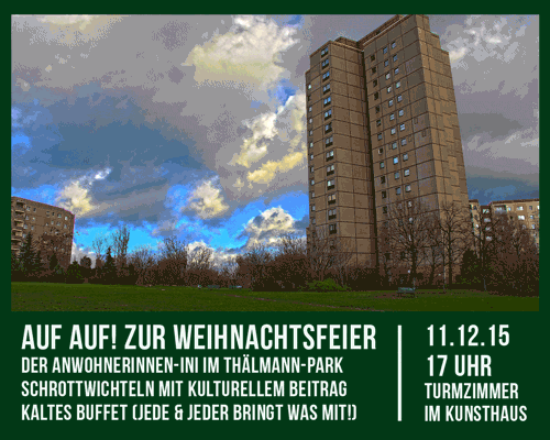 Weihnachtskarte für AnwohnerInnen-Ini Beitragsdatum 21. November 2015 In Animations Einladungskarte für die Weihnachtsfeier der AnwohnerInnen-Initiative im Thälmann-Park Animiertes Gif von Markus Wende Berlin, Nov. 2015 SchlagwörterAnimationGifWeihnachten Cartoon: Ich liege im Sterben 12 Seconds Xmas Schreibe einen KommentarKommentar * Name * E-Mail * Website