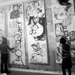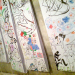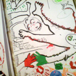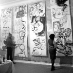 Am Freitag, den 2.10.09 war ich zu Gast bei Maki Shimizus Aktion Drawing #3 im Wortwedding. Zum Aktion Drawing treffen sich diverse ZeichnerInnen um auf aufgehängten Papierbahnen spontan zu zeichnen, malen und gestalten. Man legt einfach drauf los, schafft neues oder verändert und ergänzt vorhandene Zeichnungen. Auf jeder Papierbahn entsteht so ein verrücktes Universum von Figuren und Objekten, die unvorhersehbar Bezug zueinander nehmen. Besonders spannend war es für mich zu sehen, wie meine eigenen Skizzen dabei von anderen um neue Aspekte ergänzt wurden und an Ausdruck und Bedeutung gewannen. Ich danke Maki für diesen inspirierenden Abend mit vielen netten Leuten und sehr guter Live-Musik von Illute und Papptiger.